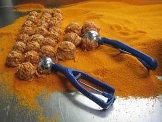 De afgekoelde bami is klaar om er bamiballen uit te steken.